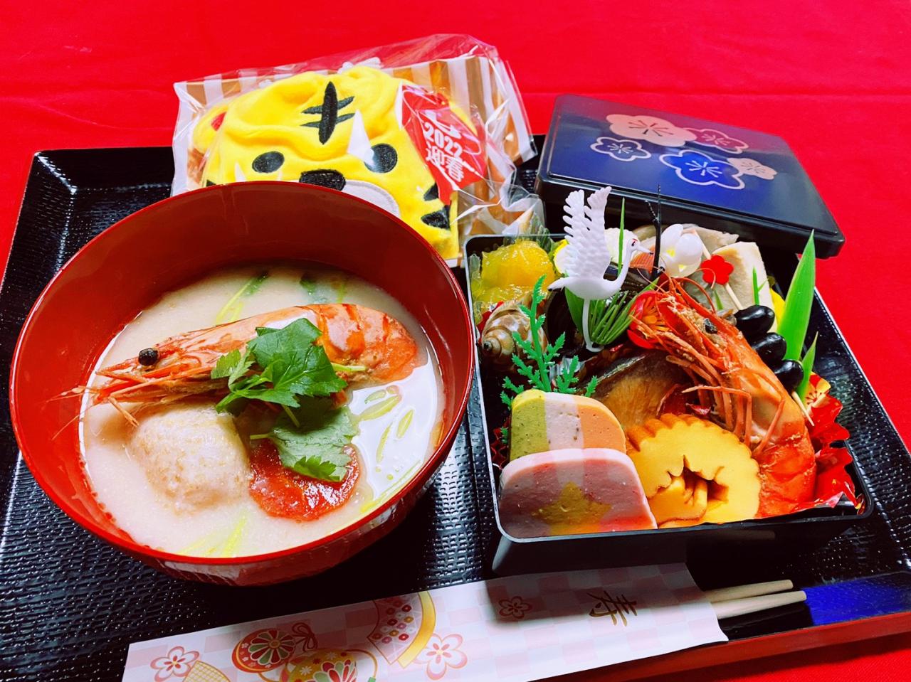 画像は昨日お話しさせていただきました おせちとお雑煮をご利用者の皆様で 召し上がられた際のものです。